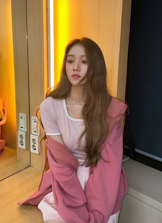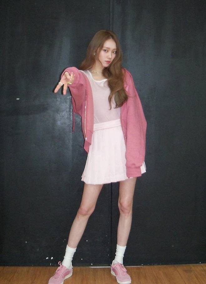 공개한 사진에서 이성경은 연분홍 플리츠 미니 스커트와 연한 핑크의 반팔 티셔츠에 핑크 집업 후드 스웻셔츠의 톤온톤 핑크 바비코어룩으로 러블리하면서도 깜찍한 미모를 발산했다.