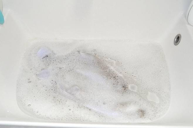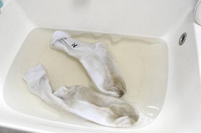 방법은 매우 간단하다. 물에 세탁제를 먼저 풀고, 오염된 양말을 담가두기만 하면 된다. 따로 문지르거나 힘을 줄 필요가 없다. 준비 과정이 간단해 누구나 부담 없이 사용할 수 있다.