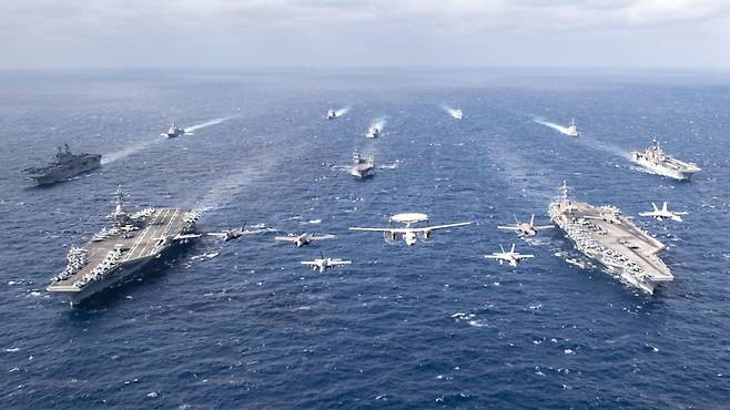 미 해군 항공모함 전단의 진입을