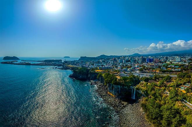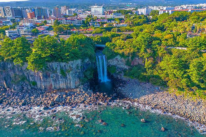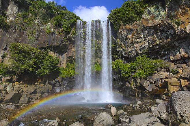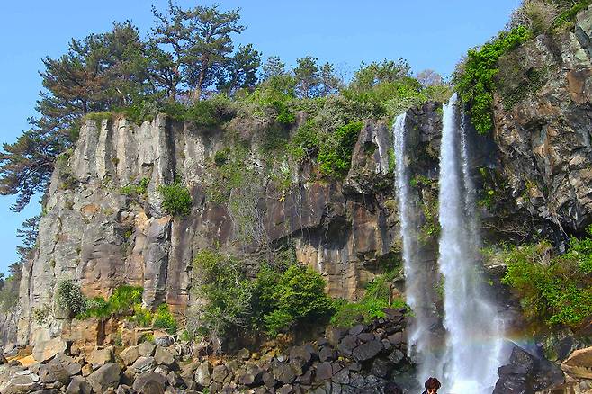이곳은 제주도 서귀포시 동남쪽에 위치한 동양 유일의 해안폭포로 물줄기가 바다로 직접 떨어지는 장관을 연출한다.