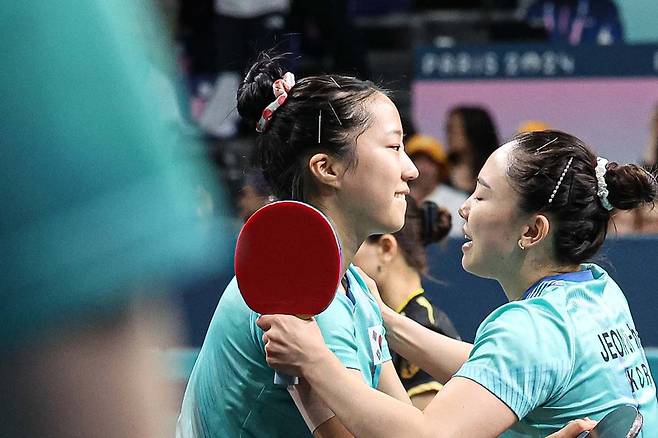 파리올림픽 단체전은 5선 3선승제로 이뤄지며 복식을 먼저 한 번 치른 뒤 단식 경기로 이어지는 경기 흐름을 가지고 있다. 한국은 앞서 항저우 아시안게임에서 금메달을 거머쥔 신유빈-전지희 조를 내세워 승기를 잡았다.