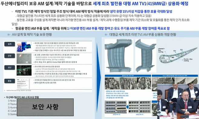두산에너빌리티가 방산 수출 부품 국산화 세미나에서 전투기 엔진 개발에 필수적인 핵심 기술들을 대거 공개한 것인데요.