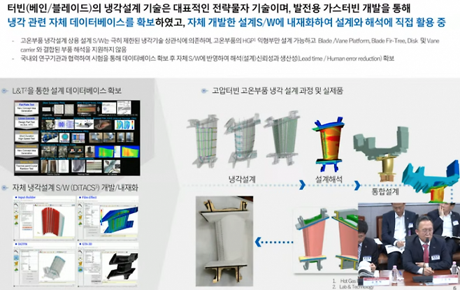 고압 터빈과 핵심 부품에 대한 냉각 설계 과정을 시뮬레이션으로 미리 검토할 수 있으며, 가상으로 설계 후 이런 데이터를 활용해 실제품을 만들었을 때 시험 과정에서 오차가 거의 없었다는 점을 강조했습니다.
