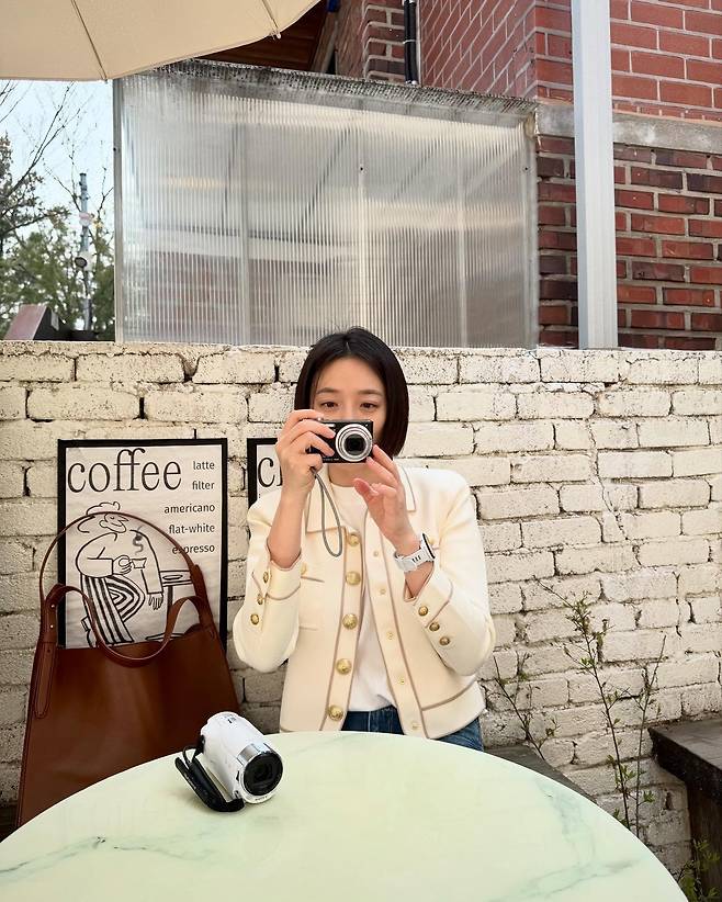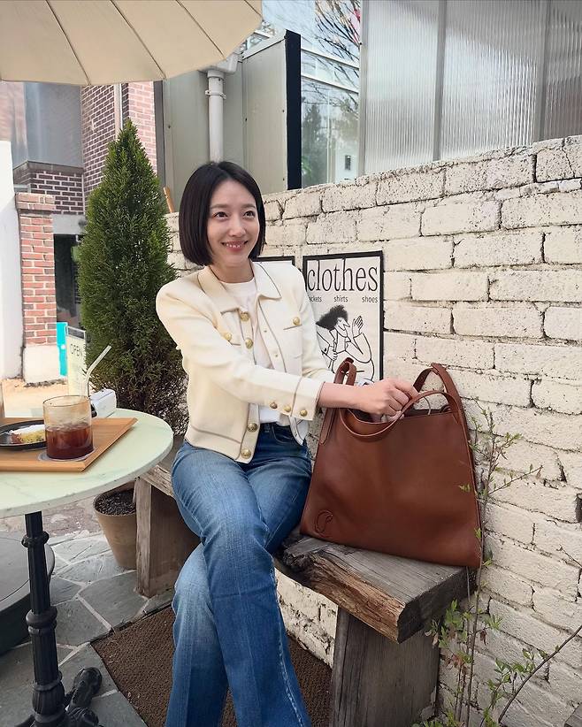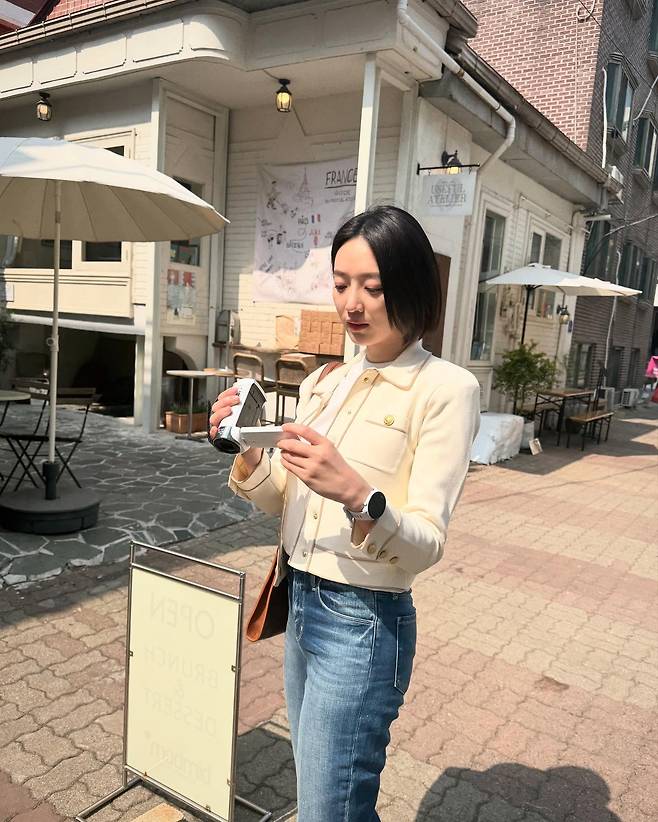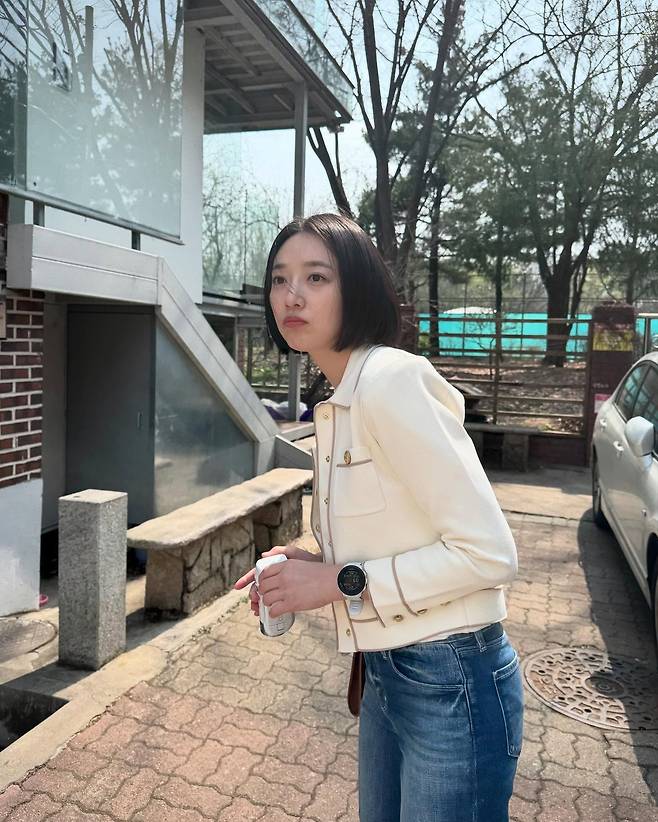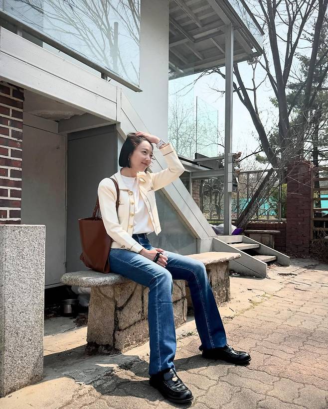 크림빛이 감도는 골드 버튼 자켓이 룩의 중심을 잡아주고, 절제된 디테일 덕분에 우아하면서도 담백한 분위기를 연출했어요.