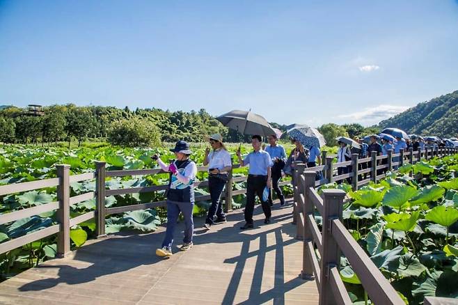 올해 이미 7월 18일에 개방되어 8월 18일까지 진행되는 ‘회야댐 상류 생태습지 탐방’ 행사는 왕복 3km 구간을 산책하며 진행되는 코스라고 할 수 있다.