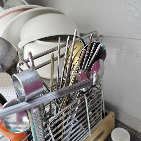 많은 사람들이 숟가락을 세제로 문지른 후 물로 헹구기만 하지만, 미세한 세제막은 완전히 제거되지 않습니다. 이 잔여 세제가 금속 표면에 붙어 냄새와 얼룩, 세균 번식을 유발합니다. 특히 스테인리스 숟가락은 표면이 미세하게 거칠어 세제 성분이 남기 쉽습니다. 미온수에 식초 한 스푼을 넣고 숟가락을 10분 정도 담근 뒤 깨끗이 헹구면 세제막이 완전히 제거됩니다.
