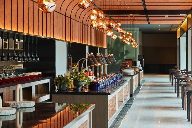 소노캄 경주 리조트 내 메인 뷔페 레스토랑인 셰프스키친 담음은 신선하고 다양한 메뉴를 제공하여 조식 뷔페를 즐기기에 좋습니다. 또한, 리조트 내에 다양한 콘셉트의 스낵바와 펍, 그리고 스카이라운지가 마련되어 있어서 따로 경주 맛집을 찾지 않더라도 문제 없어요. 또한 문단지의 중심에 위치하고 있어, 경주월드와 같은 주요 테마파크나 보문호반길 산책로 접근성이 매우 뛰어납니다.