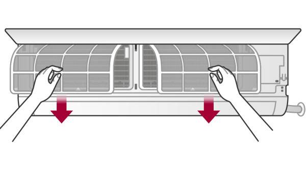 공기 청정 기능이 있는 모델의 경우 극세 필터의 상하/후크를 분리하여 내부에 있는 필터와 극세필터를 분리해 주세요.
