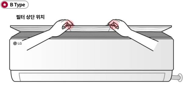 사용 중인 모델의 필터 타입을 확인해 주세요. ➔ 벽걸이 에어컨은 제품에 따라 필터 분리 방법이 달라요.