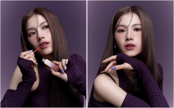 긴 생머리와 딥한 퍼플룩으로
