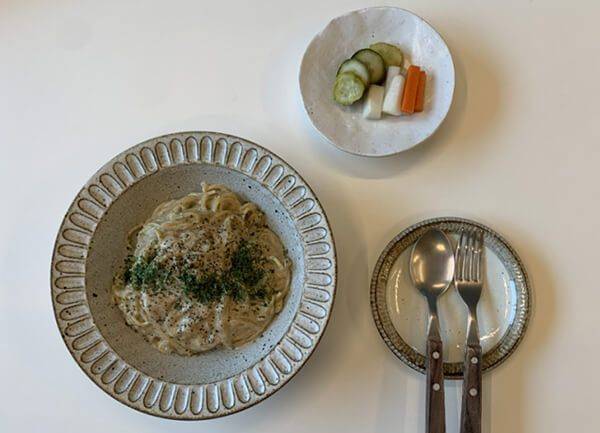 레이식당의 파스타 밀키트 중에서는 게 내장의 풍미를 즐길 수 있는 ‘카니미소 크림 파스타’가 추천할 만하다. 카니미소는 일본어로 ‘게 내장’을 뜻한다. 이름 그대로 게 내장을 넣어서 풍미가 진하고 고소한 맛을 즐길 수 있는 파스타 밀키트다. 크림소스와 삶은 파스타면, 파마산 치즈, 파슬리 가루 등이 든 구성으로, 맛을 낼 수 있는 양파와 식용유, 후추가루도 함께 제공된다. 가격은 13,900원이다.