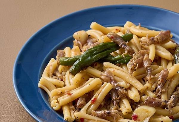 길쭉길쭉해서 면 형태로 즐길 수 있는 파스타뿐 아니라, 소스와 함께 간편하게 즐길 수 있는 짧은 파스타를 사용하는 숏 파스타 메뉴도 추천할 만하다. ‘금토일샴페인빠 꼴뚜기 숏 파스타’는 쫄깃한 카세레체면에 건조 꼴뚜기의 농축된 감칠맛이 스며든 메뉴다. 이탈리아산 듀럼밀 세몰리나를 활용한 제품으로, 꽈리고추와 마늘로 깔끔하게 맛을 냈다. 올리브유, 계란 프라이 등을 곁들이면 더욱 풍성하게 즐길 수 있다. 가격은 9,900원이다.