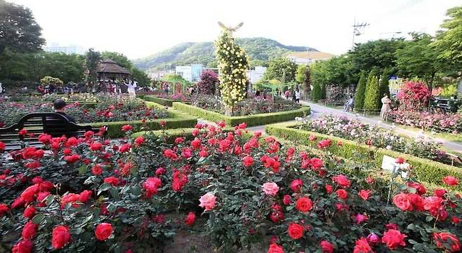 공원 내부는 테마별 장미 정원으로 나뉘어 있어 걷는 길마다 다른 분위기를 선사하죠.