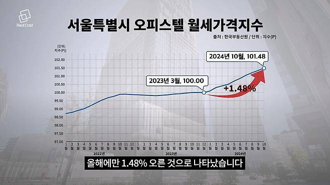 특히 월세가 치솟고 있습니다. 한국부동산원 자료에 따르면 오피스텔 월세가격지수는 올해에만 1.48% 오른 것으로 나타났습니다. 임대수익이 개선되면 투자수익률도 높아지니 투자수요도 생깁니다. 이 와중에 금리인하도 단행됐습니다.