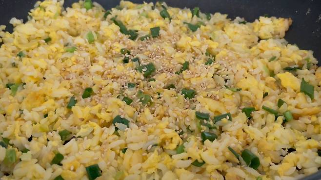 마지막으로 통깨까지 올려서 드셔 보세요. 고소한 향이 확 살아나면서, 계란볶음밥의 맛이 한층 더 풍부해집니다. 웬만한 중국집 볶음밥보다 맛있으니, 꼭 한번 만들어 보세요.