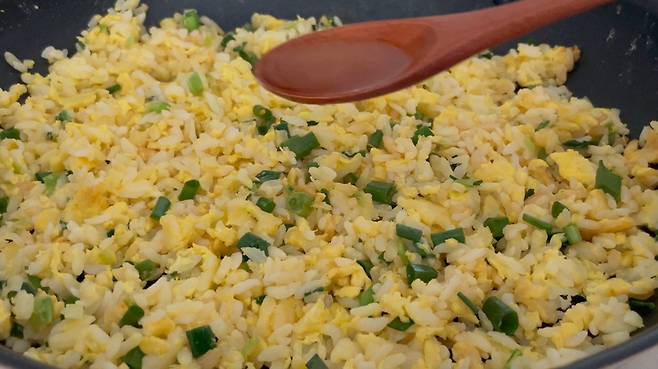 볶을 때 퍽퍽하지 않고 고슬고슬하면서도 부드러운 식감이 살아납니다. 찬밥으로 하면 더 잘 됩니다.