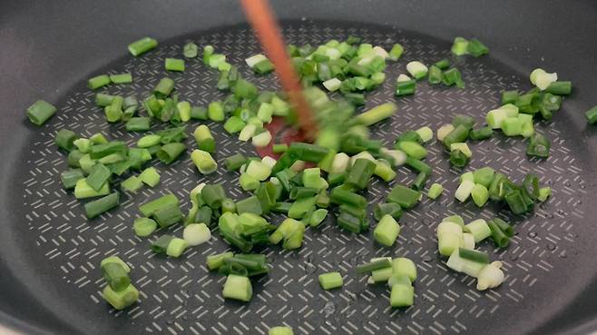 쪽파나 대파를 넣고 볶아서 향을 내세요. 양파를 넣으셔도 되고, 야채가 없다면 생략해도 큰 지장은 없습니다.