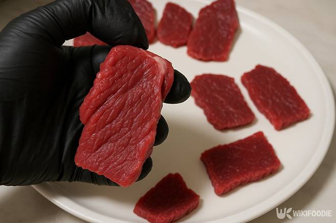 가장 흔히 사용되는 부위는 우둔살이다. 지방이 적고 부드러우면서도 쫄깃한 식감이 특징이다. 기름기가 적어 생으로 먹기에 이상적이다.
