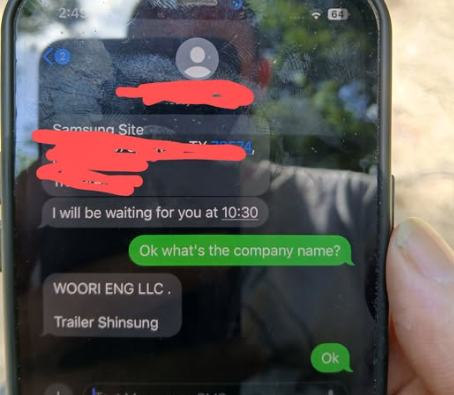 테일러시에서 건설 인부로 일하는 브랜든(Brandon) 씨는 삼성전자 테일러 공장 공사 협력 업체 우리이엔지로부터 테일러 공사 인력 모집 메시지를 받았다고 전했다. 그는 “최근 우리이앤지란 업체에서 삼성전자 테일러 공장 건설 인력 채용 연락을 받았다”며 “테일러 공장 공사가 다시 재개된 것 같다”고 밝혔다.