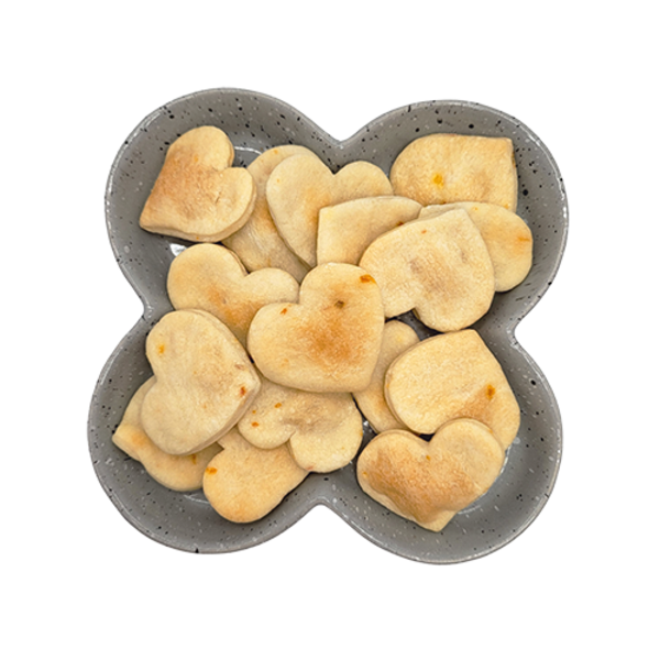 크리스마스 간식으로 주기 좋은 강아지 수제 쿠키입니다. 감자, 당근이 주재료예요. 건조 과정을 거치기 때문에 조금 단단한 식감의 쿠키라고 합니다.