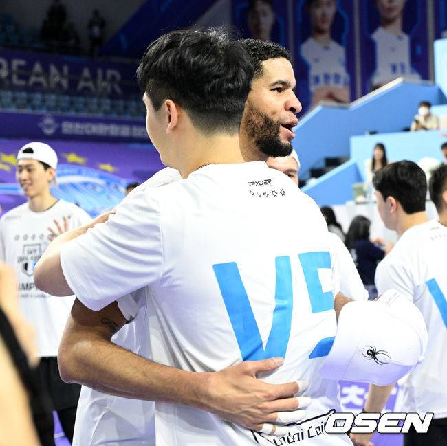 현대캐피탈 레오가 문성민과 우승의 기쁨을 나누고 있다. 2025.04.05 /sunday@osen.co.kr