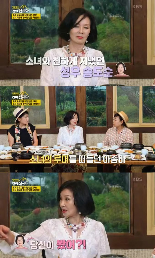 목욕탕에서 들리는 수군거림에, 절친 송도순이 루머를 떠들던 아줌마와 몸싸움을 벌였다는 일화도 있을 만큼, 상황은 심각했다.