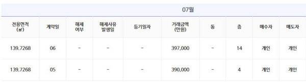 4일 국토교통부 실거래가 공개시스템에 따르면, 경기 성남시 분당구 백현동 판교푸르지오그랑블 전용면적 139㎡(52평형)가 지난달 6일 39억7000만원(14층)에 거래됐다. 이 단지 해당 평형 역대 최고가 거래다. 올해 들어 경기도에서 거래된 아파트 중 최고가다.