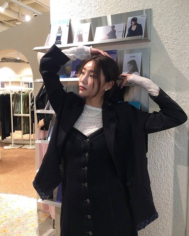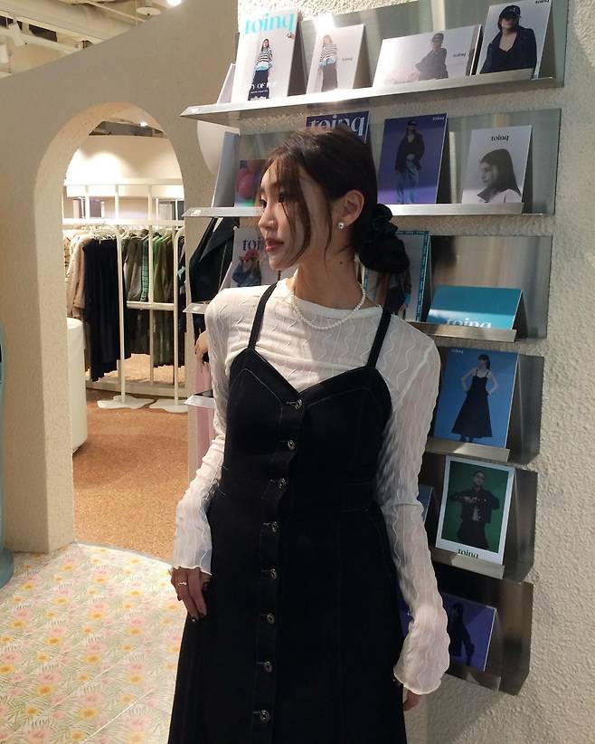 원피스로 여성스러우면서도 고급스러운 분위기를 연출한 코디예요