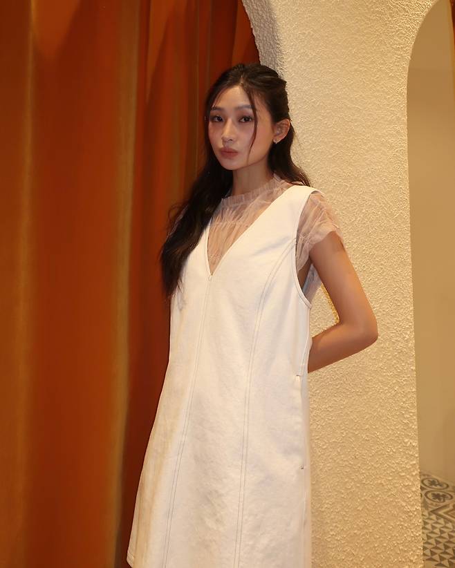 여리여리하면서도 캐주얼한 브이넥 원피스도