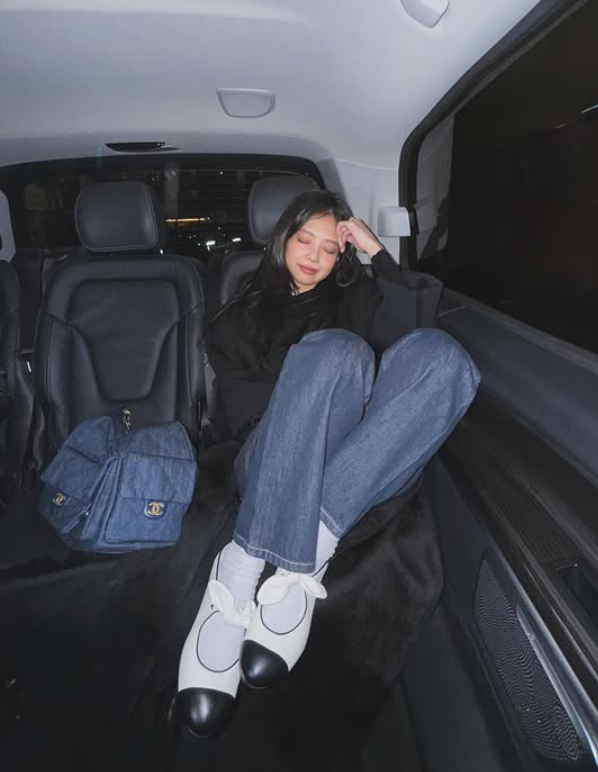 가방은 캐주얼한 데님백을 매치했죠.