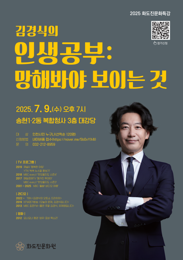 인천 동구 화도진문화원이 주최하는 '2025 화도진문화특강'이 다음 달 9일 송현1·2동 복합청사 3층 대강당에서 열린다.