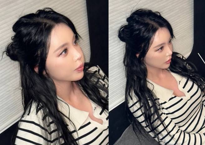가수 홍진영이 S컬 웨이브가 말린 긴 머리를 하프번으로 연출한 헤어스타일을 선보여 이목을 끌었습니다.
