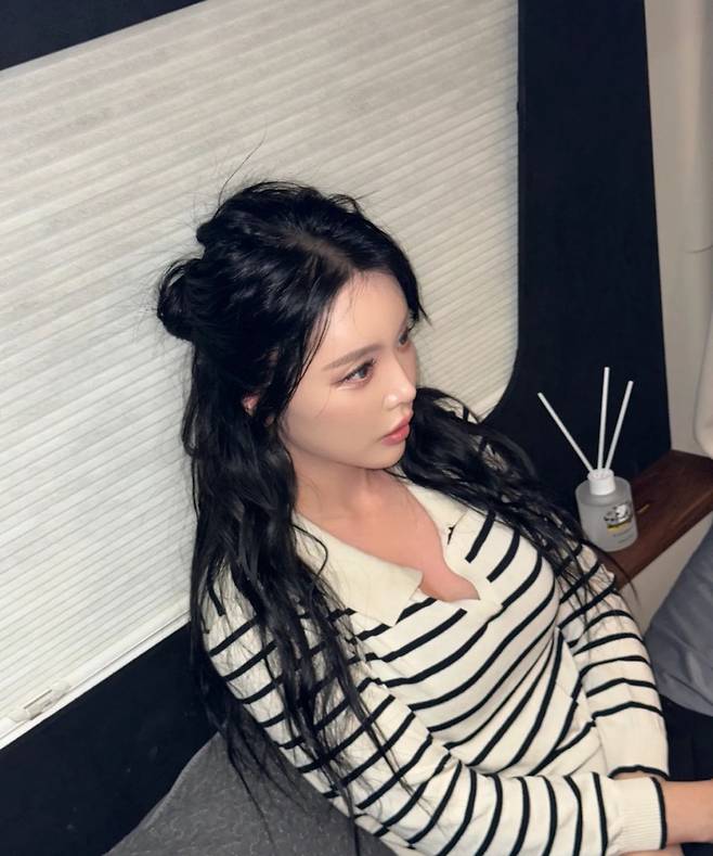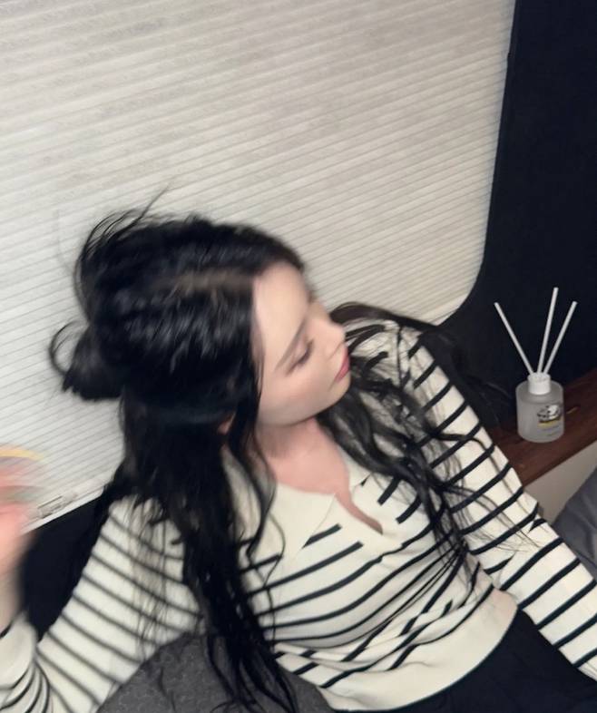 또한 긴 앞머리를 옆으로 넘겨 동그란 이마를 드러내는 방식으로 동안 미모를 자랑했습니다.
