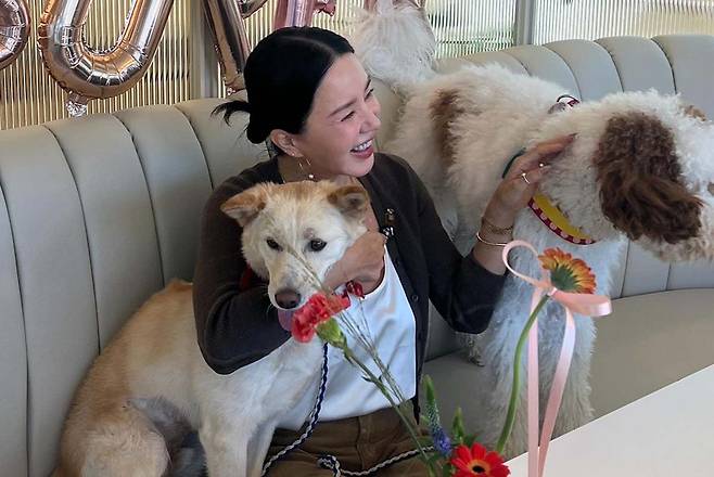 사진 속 엄정화는 ‘슈퍼’를 꼭 끌어안고 자신이 생일을 맞이한 것처럼 행복한 미소를 짓고 있었는데요. 엄정화가 점심을 위해 방문한 곳은 반려견과 반려인을 위한 프리미엄 복합 시설로 평소에도 자주 방문하는 것처럼 보입니다.