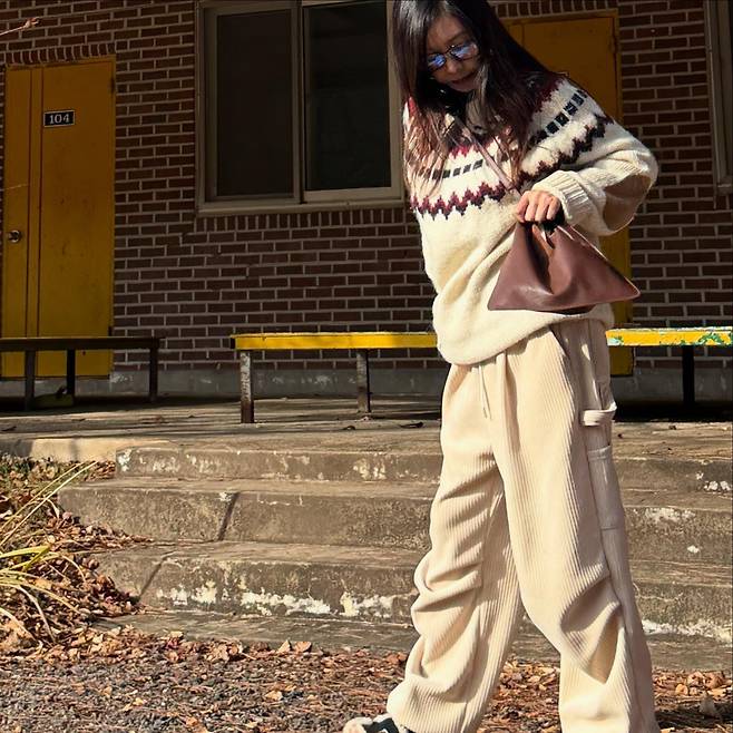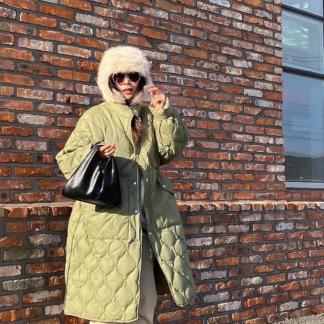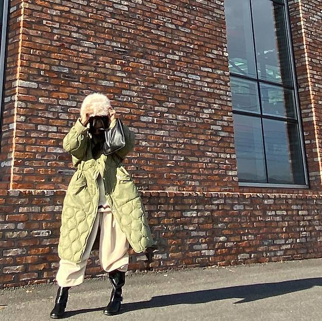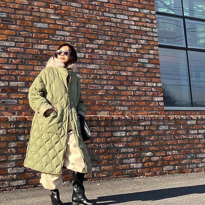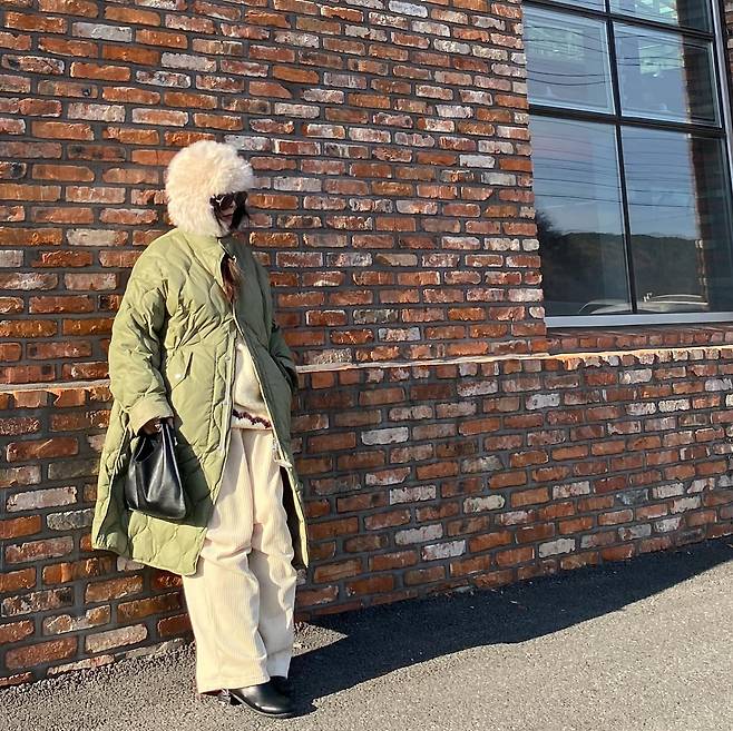 사진 속 황신혜는 화이트 팬츠에 카키색 롱패딩을 매치했습니다.