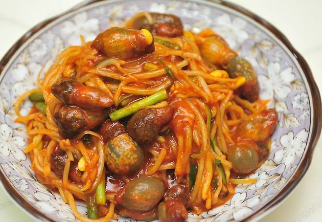 술안주로 통하는 골뱅이는 전 세계에서 거의 유일하게 한국에서만 먹는 음식이다. 1980년대 후반부터 골뱅이가 국민 안주로 등극하면서 동해에서 골뱅이 씨가 마르기 시작하자 해외에서 수입하고 있다.