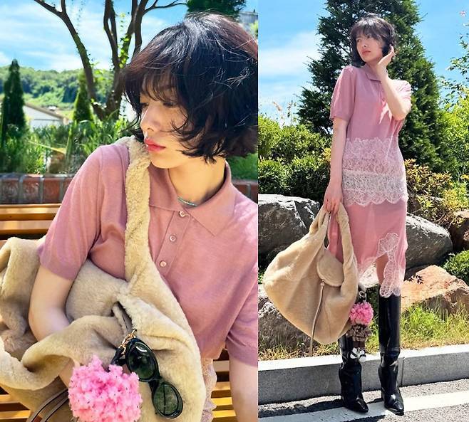 그룹 애프터스쿨 출신 배우 나나가 핑크 티셔츠에 은은한 레이스 포인트가 더해진 원피스를 매치해 시선을 사로잡았습니다.
