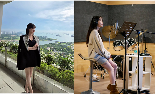 박은빈이 스튜디오에서 편안한 무드를 강조한 캐주얼 룩을 선보였다. 오버사이즈 니트와 데님 쇼츠의 조합은 자연스럽고 실용적이며, 발목까지 감싸는 브라운 부츠가 따뜻한 느낌을 더한다. 전체적으로 심플하지만 세련된 분위기를 유지하며 음악 작업에 몰입한 모습을 돋보이게 한다.