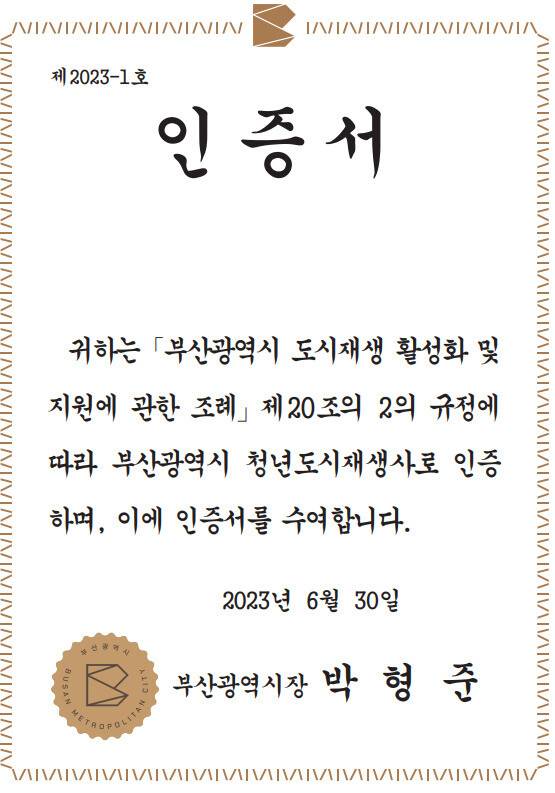 청년도시재생사는 부산시가 발급하는 자격증이다.