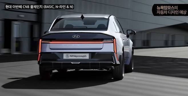후면부를 보면 정말 기절초풍할 수밖에 없다. 거대한 H형 그래픽 테일램프가 차체 끝단까지 확장되며 범퍼 하단까지 길게 뻗은 세로형 디자인으로 완성됐다. 이건 명백히 그랜저 7세대(GN7)에서 선보인 디자인 언어를 준중형에 그대로 옮겨온 것이다! 현행 7세대 아반떼가 얇고 긴 커넥티드 타입의 테일램프로 날렵함을 강조했다면, 8세대는 완전히 다른 접근으로 고급스러움과 존재감을 극대화했다.