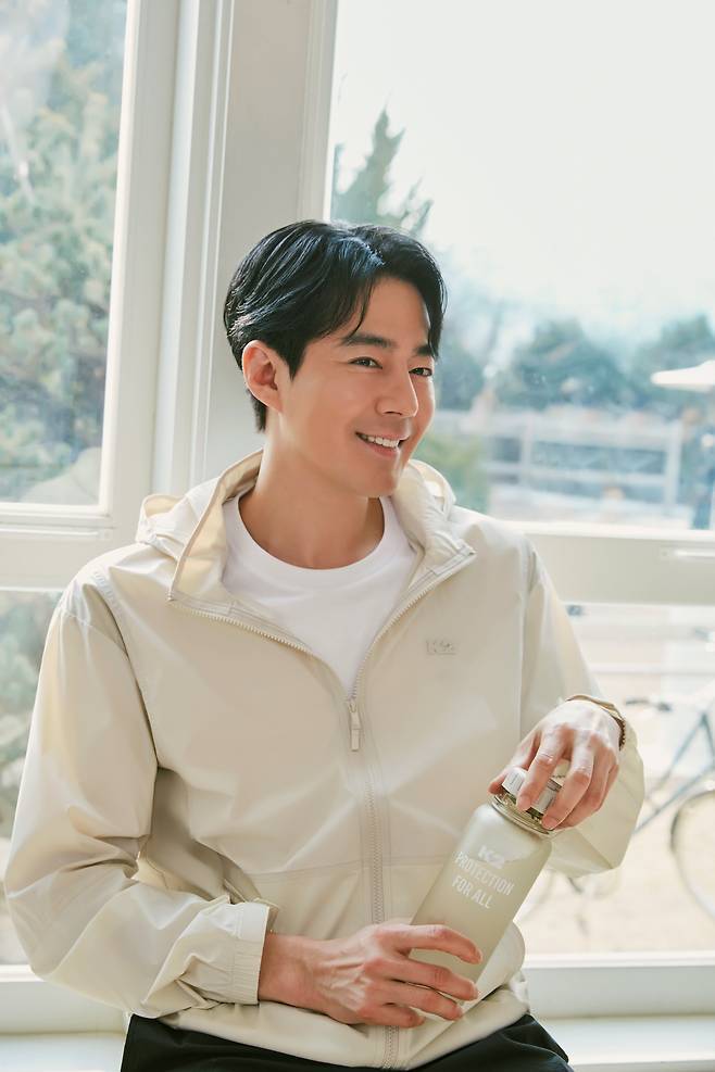 감각적인 컬러 조합과 여유로운 포즈로 K2만의 감성과 조인성 특유의 우아한 분위기가 조화를 이루며, 고급스러운 아웃도어룩을 완성했습니다.