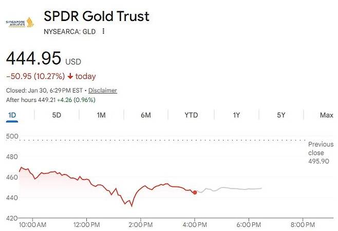 뉴욕상업거래소(COMEX)에서 금 선물 가격은 하루 만에 438.8달러(8.25%) 폭락해 트로이온스당 4,879.6달러에 마감했다. 이는 1980년대 초반 이후 약 40년 만의 최대 일일 낙폭이다. 은 선물 가격은 25.5% 급락하며 트로이온스당 85.25달러로 주저앉았다. 은 가격은 이날 장중 36% 하락한 76달러선까지 밀리는 등 역사상 최악의 하락폭을 기록했다.