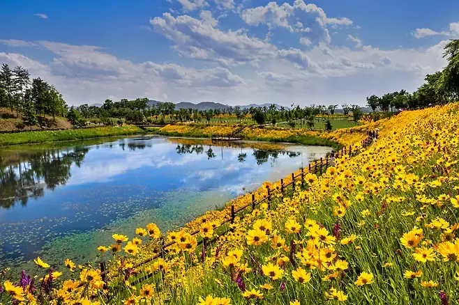 함안 악양생태공원은 단순한 꽃놀이 명소를 넘어, 자연 속에서 천천히 걷고 머무는 여행을 제안한다. 특히 5월 말부터 6월 초까지 피는 금계국은 그 풍경 하나만으로도 발걸음을 끌어당긴다.