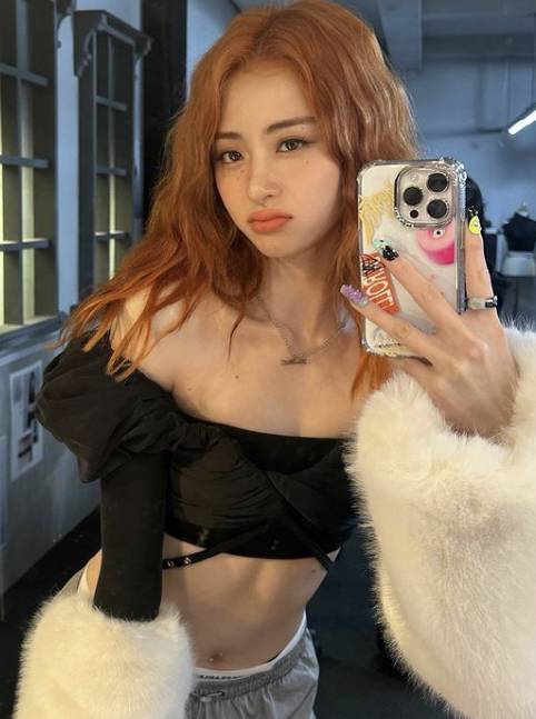 여기에 오렌지빛 컬러의 헤어와 화려한 네일로 다채로운 스타일링을 선보였다.