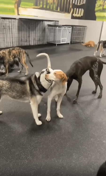 가만히 서 있는 강아지들, 갑자기 주둥이를 물기 시작하다!
