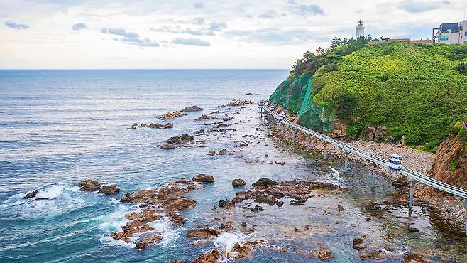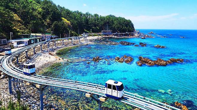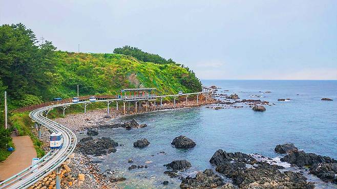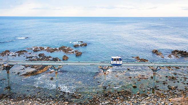 높은 레일 위에서 내려다보는 동해는 육지에서 바라보던 모습과는 전혀 다른 입체적이고 압도적인 비경을 품고 있습니다.