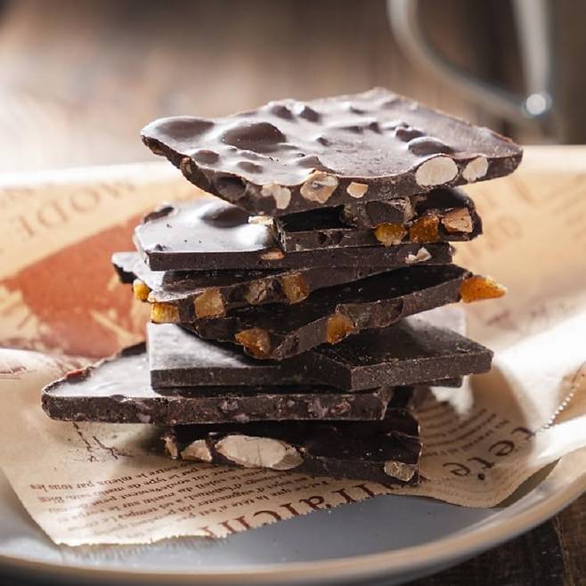 카카오 함량 70% 이상의 다크초콜릿은 플라보노이드가 풍부해 스트레스를 줄이고 뇌 혈류를 개선합니다.