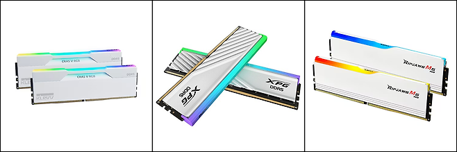 예쁘죠? 요즘 각 브랜드의 화이트 튜닝램 디자인 수준이 완전히 물이 올랐습니다. 셋 다 인기순위 상위권에 있는 제품들이며 XMP(인텔) / EXPO(AMD)를 지원하는 DDR5 6,000MHz CL30 스펙입니다.