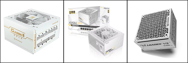 마지막은 SuperFlower SF-850F14XG LEADEX VII GOLD 화이트 ATX3.1(실시간 187,610원) 입니다. 냉각용 배기 홀의 면적이 가장 넓어서 냉각 효율이 좋은 편이고, 사이베네틱스 플래티넘 등급으로 전력 공급 효율과 안정성도 좋은 편입니다. 측면 로고는 사람에 따라 고급 파워의 상징이 될 수도 있고 추노마크로 보일 수도 있겠네요.