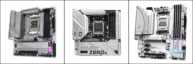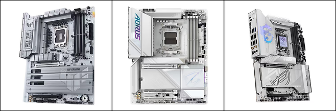 화이트 컨셉의 PC, 그리고 깔끔한 데스크테리어가 인기를 끌다 보니, 이제 메인보드 브랜드들도 다 눈치를 깠(?)죠. 어지간한 주력 메인보드 라인업은 화이트 버전을 출시하는 추세입니다.
